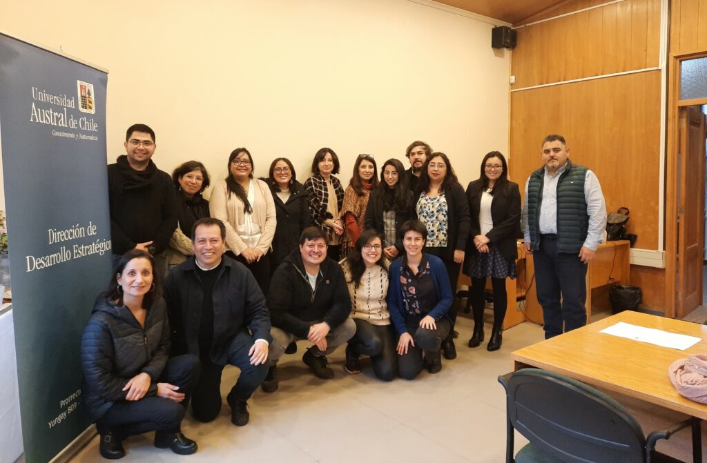 Bárbara Toledo, Facultad de Ciencias Jurídicas y Sociales; Carmen Angulo y Valentina Jara, Facultad de Filosofía y Humanidades; Carolina Vidal, Loreto Damm, Mirko Vera y Luis Arroyo, Facultad de Ciencias Económicas y Administrativas; Eliana Sotomayor y Marisol Barría, Facultad de Ciencias; Felipe Herrera, DACIC; Marcela González, Jorge Lorca y Pamela Raddatz, Dirección de Vinculación con el Medio; Marisol Barría, Facultad de Ciencias; Natalia Cortés, DVAP; Sonia Villavicencio, Facultad de Ciencias de la Ingeniería; Ricardo Vega, DACIC Campus Patagonia; Roland Sánchez, Dirección de Investigación Sede Puerto Montt; Pamela Morales, Patricia Ceverio, Waleska Berríos, Yanira Alarcón y Pamela Rey, Dirección de Desarrollo Estratégico.